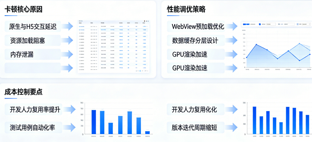 如果你正在经历这种困境,请先深呼吸。卡顿不是混合开发的“原罪”,而是特定技术债积累到临界点的表现。这正是你急需一份 《原生+H5混合开发的性能调优与成本控制完整指南》 的时候。本文将为你提供一套从诊断到根治的系统性解决方案,不仅解决性能问题,更能帮你在优化过程中实现成本的有效控制,这正是这份 完整指南 的核心价值所在。我们将从三个层面展开:精准定位性能瓶颈、实施针对性优化策略、建立可持续的性能治理体系。