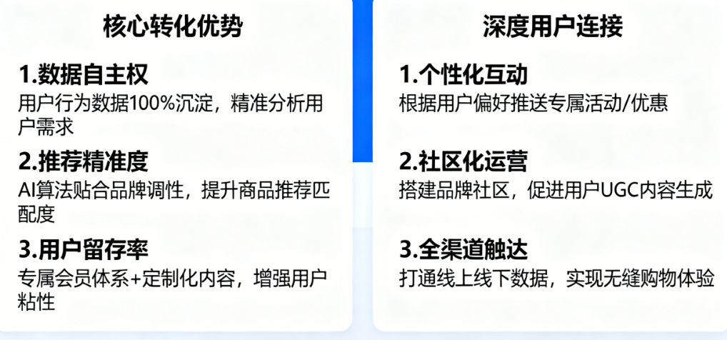 要透彻理解这一点,就必须同时回答那两个核心问题:自建站的核心转化优势是什么?如何建立深度用户连接? 实际上,它们是一体两面——优势正是通过“深度连接”来实现和巩固的。没有连接的“优势”是空洞的,没有优势导向的“连接”是无效的。