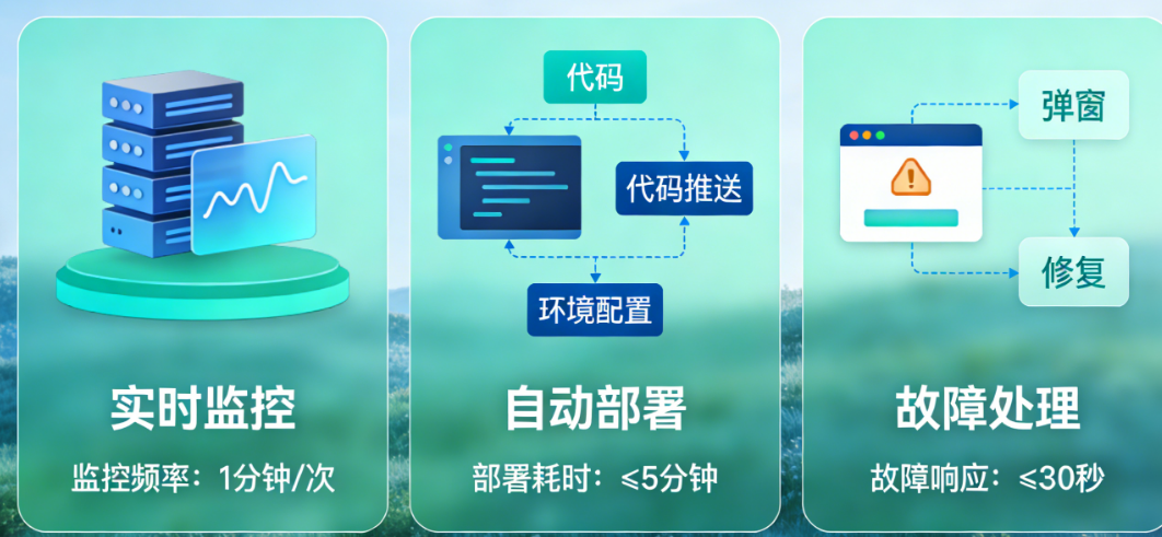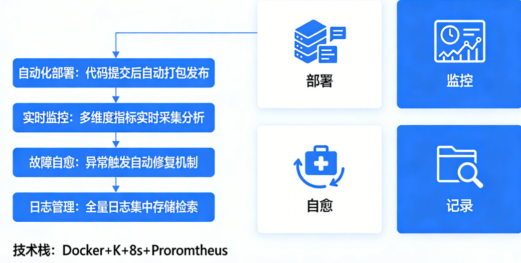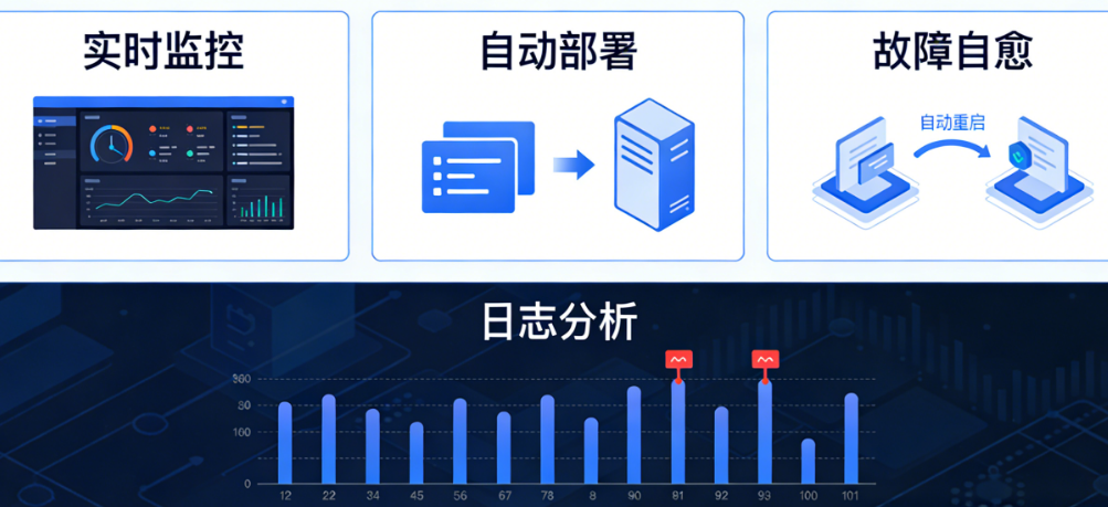 场景一:进程守护。 最简单也是最有效的自愈手段。用Supervisor这类工具监控你的服务进程,如果进程意外退出,自动拉起来。很多你以为的“故障”,其实只是进程挂了,重启就能解决。