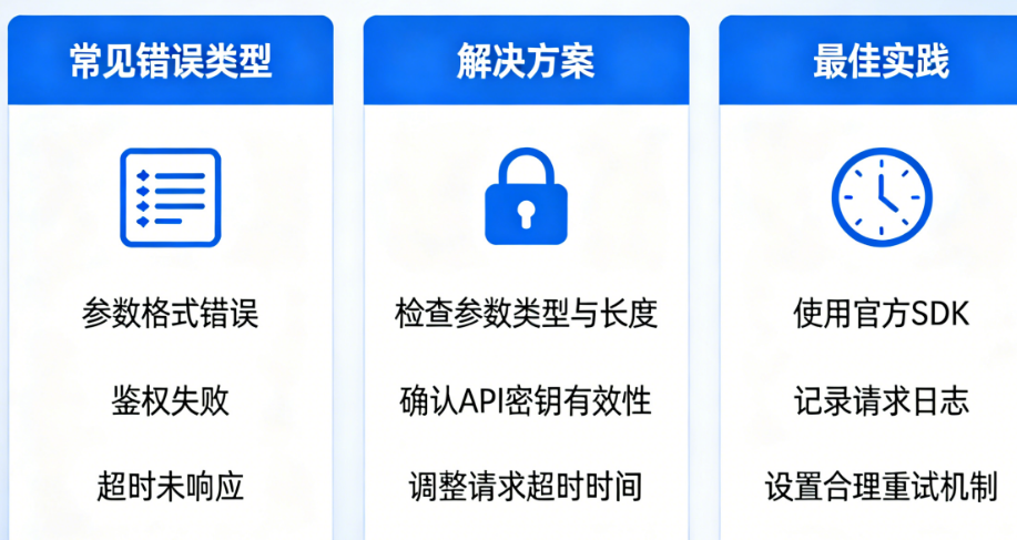 某智能客服团队通过系统化的错误预防和处理机制,将接口调用故障率从每月12次降至2次以下,平均故障修复时间(MTTR)缩短至15分钟。他们做对了什么?无非是:密钥不硬编码、限流有退避、并发有队列、监控无死角。