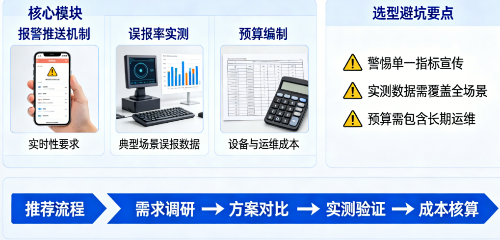 选型时务必明确:预算是只含硬件还是包含施工?软件是买断还是年费?质保期多长?响应时间承诺是否写入合同?