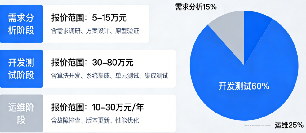 为了让预算更精准,我们需要将总包报价拆解到具体的工作项。以下是一个典型全定制AI项目的成本构成分析,每一项背后都有明确的报价逻辑。