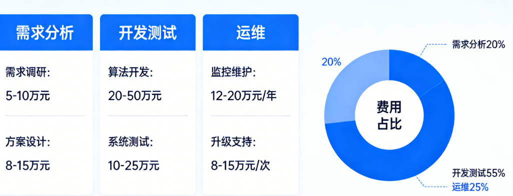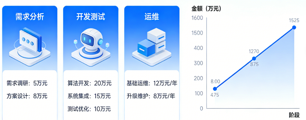 包括功能测试、性能测试、压力测试、UAT验收测试。确保AI系统在真实业务场景下稳定运行。这部分费用在8万-20万之间。