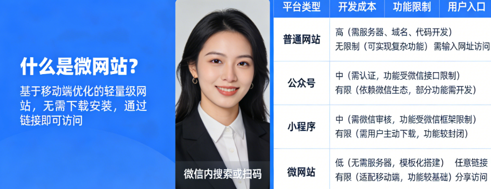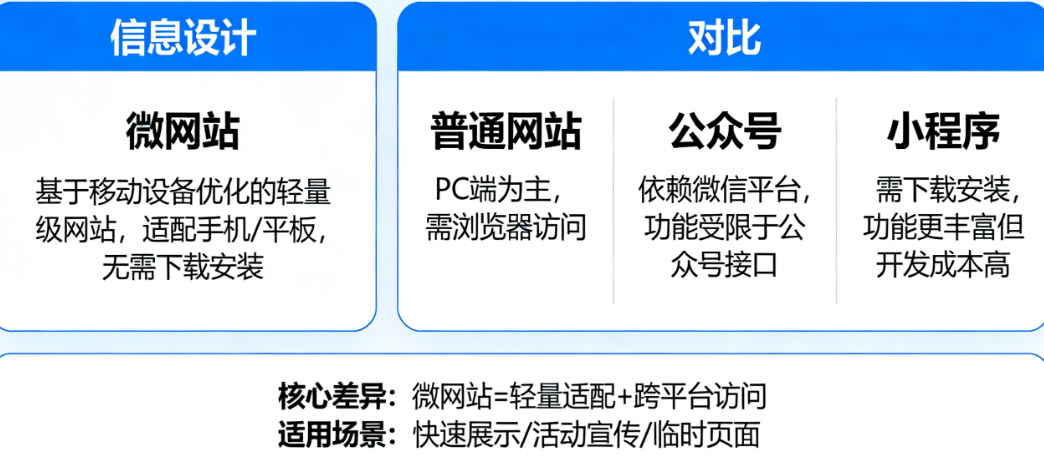 什么是微网站?和普通网站、公众号、小程序有什么区别?