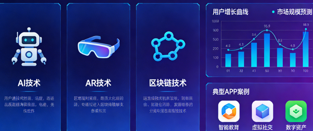 你有没有发现,身边那些让人眼前一亮的APP,早已不再是简单的工具或社交平台了?它们开始“看懂”你的照片、“听懂”你的指令、“记住”你的喜好,甚至能让虚拟物体与现实世界无缝融合,还能把你创作的内容变成真正属于你的数字资产。这背后,是AI、AR、区块链三大技术的交汇与共振。数据显示,全球AI市场规模预计在2030年达到1.8万亿美元,AR市场将以超过40%的年复合增长率扩张,而区块链在数字资产领域的应用规模已突破千亿美元。当这三股浪潮汇聚在一起时,一个全新的APP蓝海赛道正在悄然形成。然而,面对这一波技术融合的红利,创业者、产品经理和投资人普遍感到困惑:真正的机会在哪里?哪些应用方向值得押注?如何避免“为了技术而技术”的陷阱?本文将深入解析AI+AR+区块链的融合逻辑,预判未来三年内最具潜力的APP赛道,为你在新一波移动互联网浪潮中提供清晰的导航。