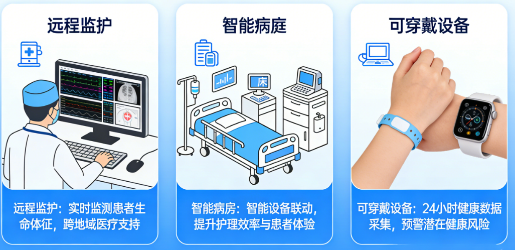 远程监护、智能病房、可穿戴设备虽然同属医疗物联网范畴,但各自的功能定位和应用场景有明显差异。远程监护侧重于院外场景,核心价值是打破时空限制,将医疗服务延伸至患者家中;智能病房聚焦院内场景,核心价值是提升护理效率和患者安全;可穿戴设备则贯穿院内外,核心价值是随身携带、持续监测、预防预警。