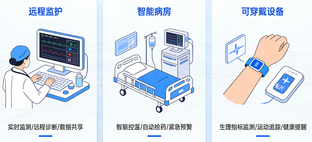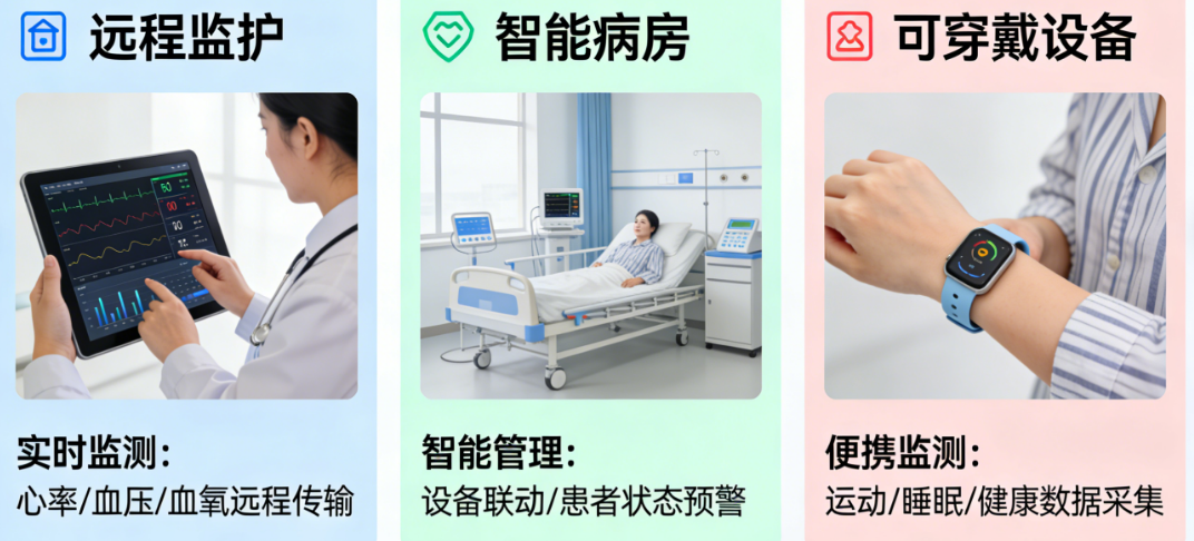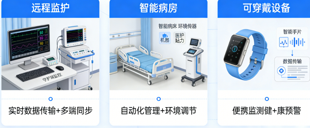 当心脑血管疾病患者出院后,家属最担心的就是深夜突发状况无人知晓;当护士在病房间来回奔波查看输液进度,身心俱疲却仍有疏漏;当慢性病患者需要定期到医院复查,挂号排队耗费大半天时间……这些医疗场景中的痛点,正在被物联网技术悄然改变。数据显示,物联网技术在医疗领域的应用,能够将急救响应时间缩短70%以上,护士巡查时间减少40%,同时将患者居家风险预警的准确率提升至92%以上。然而,面对远程监护、智能病房、可穿戴设备这三大物联网医疗应用方向,很多人仍然分不清它们的区别和各自的价值定位。本文将深入解析这三大核心应用场景,从功能特点到适用场景,从技术原理到实践成效,帮助医疗从业者、患者家属以及关注智慧健康的人群,全面理解物联网如何重塑医疗服务的形态。