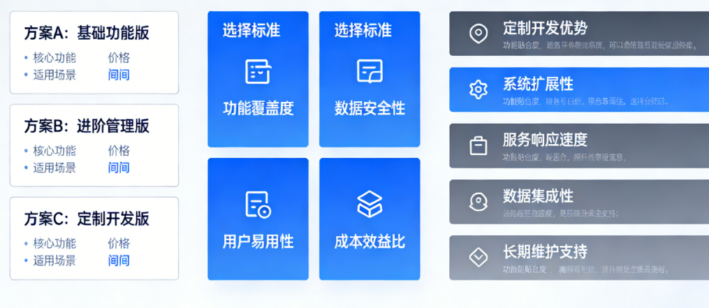 拿着你的需求清单,逐一比对三种方案。如果需求简单、规模小,先试试Excel或SaaS软件;如果需求复杂、有特殊流程,直接进入定制开发评估。对于SaaS软件,申请试用账号,把真实数据录入测试一周,看看是否顺手。对于定制开发,找3-5家开发公司沟通,让他们提供初步方案和报价,对比谁更理解你的业务、方案更落地。