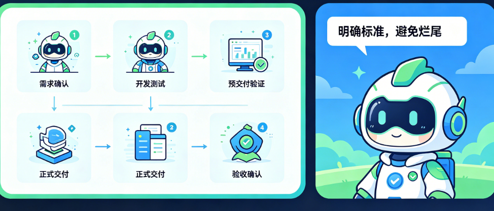 很多项目等到全部开发完成才做验收,结果问题堆积如山,返工成本极高。正确做法是按里程碑分阶段验收,每完成一个阶段就签收确认,分期结款。